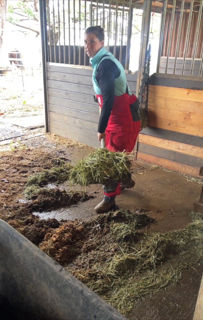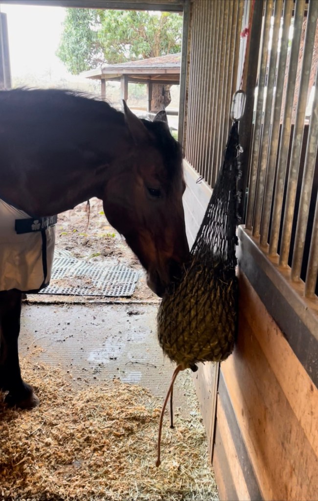 The last thing you want is a heavily blanketed horse now baking in the lull between weather fronts. It’s important to note that it’s more of a concern that a horse will be too warm, then too cold. So I error on the side of “less is more”. Horses also generate heat by eating. I always make sure the girls have an ample supply of hay to keep them both entertained and warm on stormy days/nights. Izzie is more of a challenge as she doesn’t eat when she gets stressed or she resorts to a nibble here and a nibble there. Athena on the other hand LOVES her food and will eat whatever you put down.